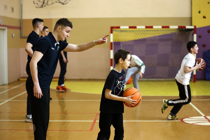 Баскетболисты пообщались с ребятами, рассказали о своем спортивном пути и провели небольшой мастер-класс для парней 10-14 лет.